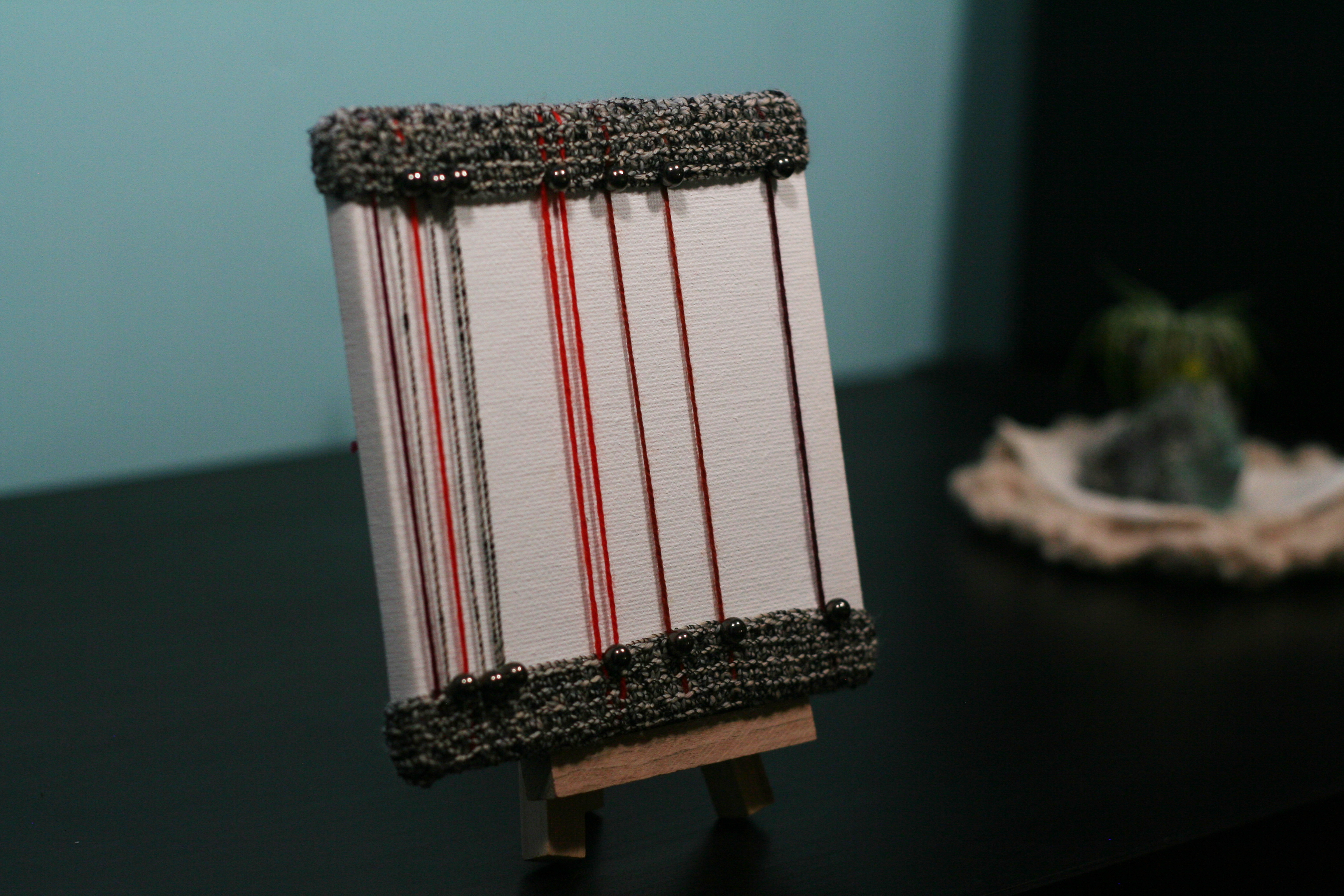 Freeform crochet art piece with a focal point on the yarn