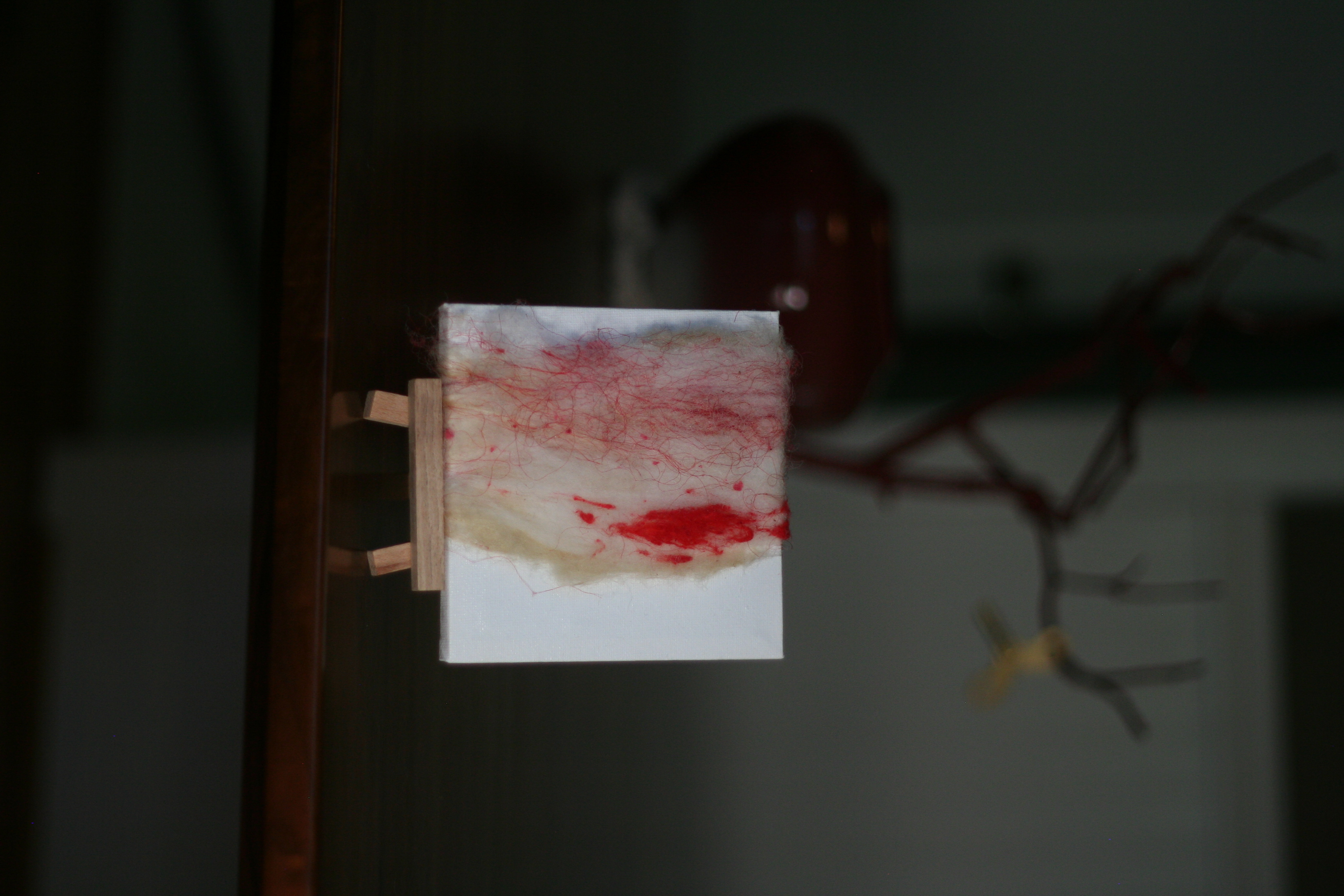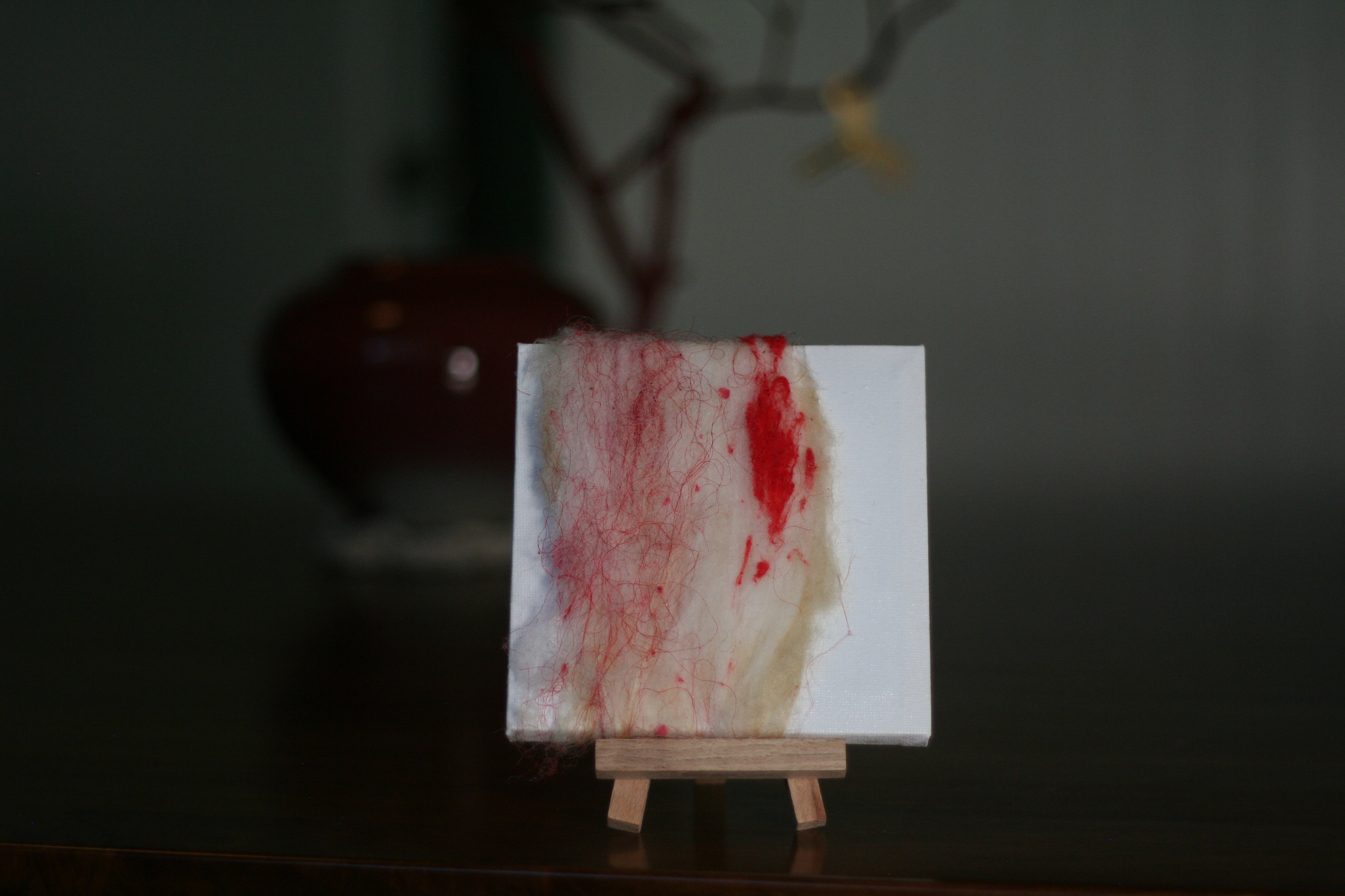 Fiber art piece with batt and filament elements.